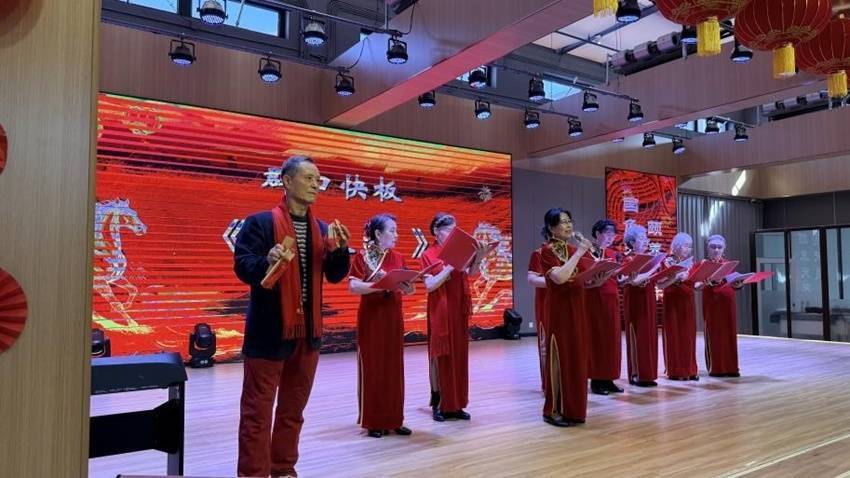 音乐响起,一束暖光打在舞台中央。身着旗袍的杜奶奶缓缓抬起手腕,随着《英雄赞歌》的旋律开口,歌声清亮而充满力量,完全不像出自一位八旬长者。台下,几十位“老粉丝”轻轻跟着哼唱,手指在轮椅扶手上打着拍子……新春将至,长春市国色天莲康养社区,一场属于老人们的“春节联欢会”正热闹上演。