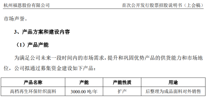 【环球网财经综合报道】杭州福恩股份有限公司以生态环保面料的研发、生产和销售作为主营业务,主要产品以再生面料为主,现已成为集面料设计、研发、纺纱、织造、印染、后整和销售于一体的大型企业,目前该公司正在申请上市。