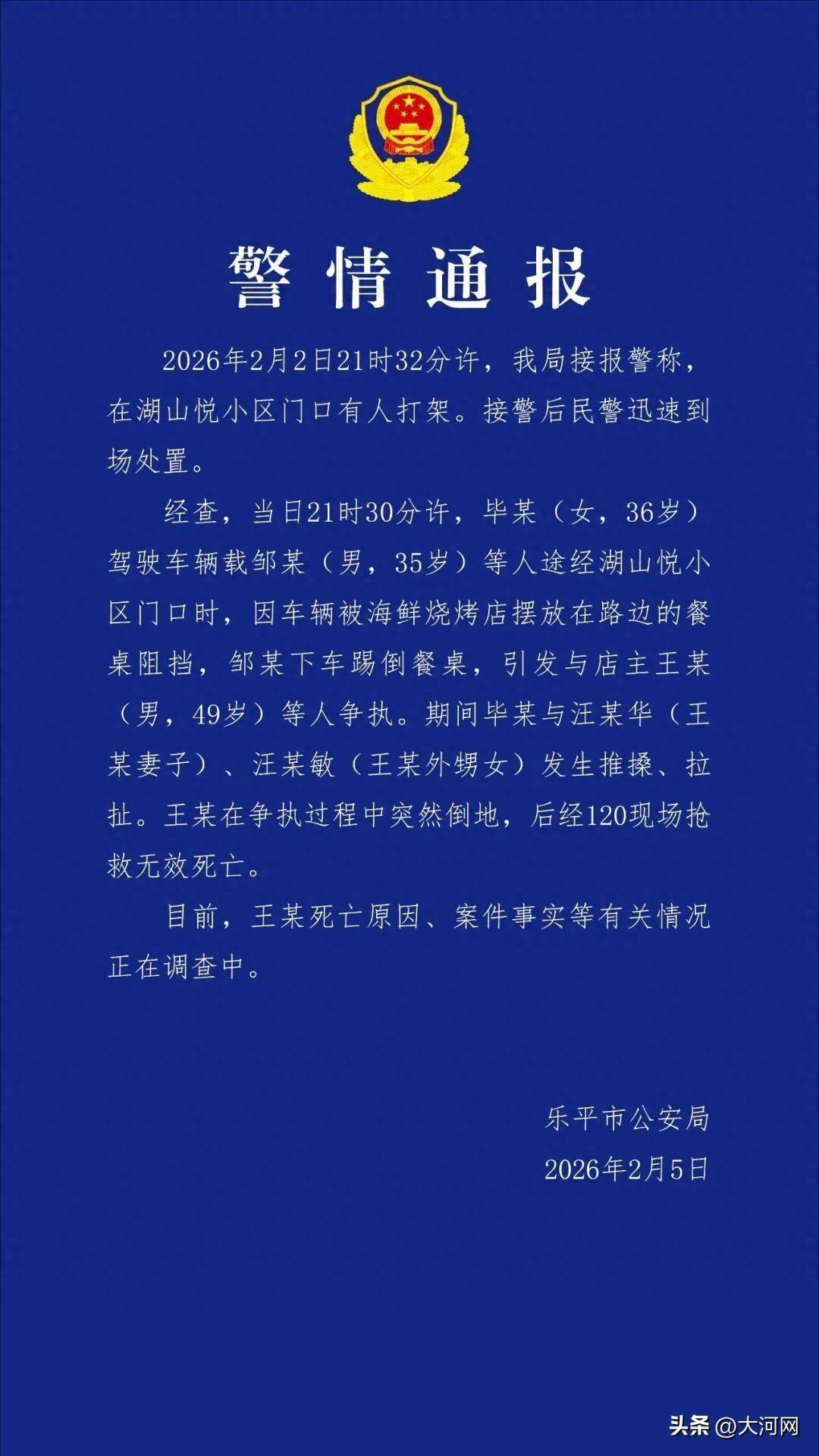 2月5日,新京报记者核实获悉,江西乐平一烧烤店老板和他人发生冲突时死亡。